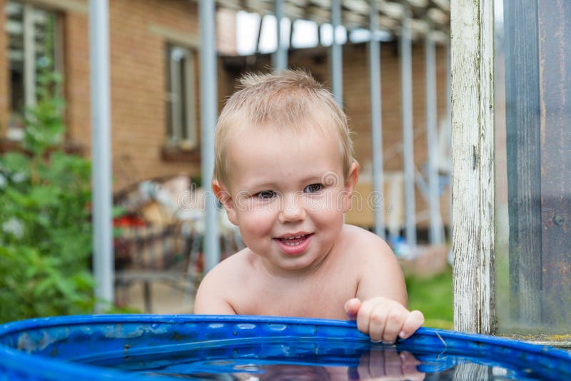 A Boy Washes His Hands in the Water Barrel Stock Photo Image of innocence, people 192122140