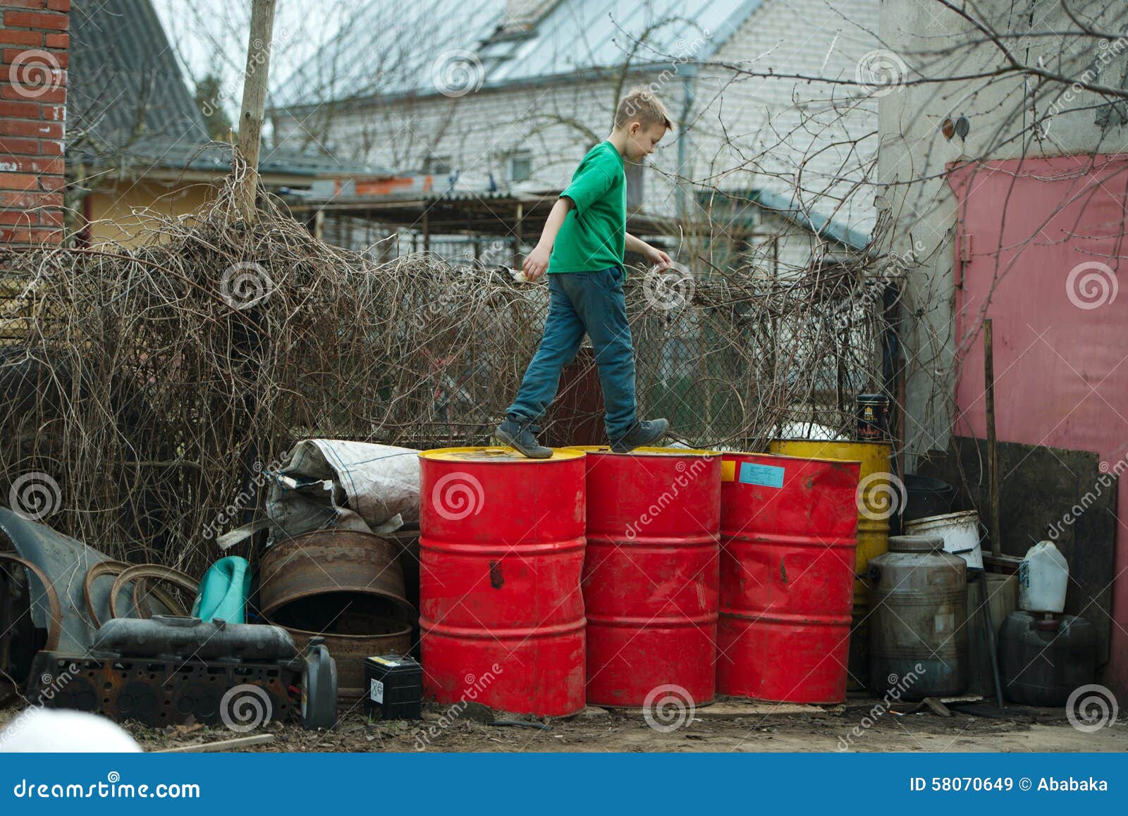 Boy Walks on the Barrels from Oil Stock Image Image of recycled, black 58070649