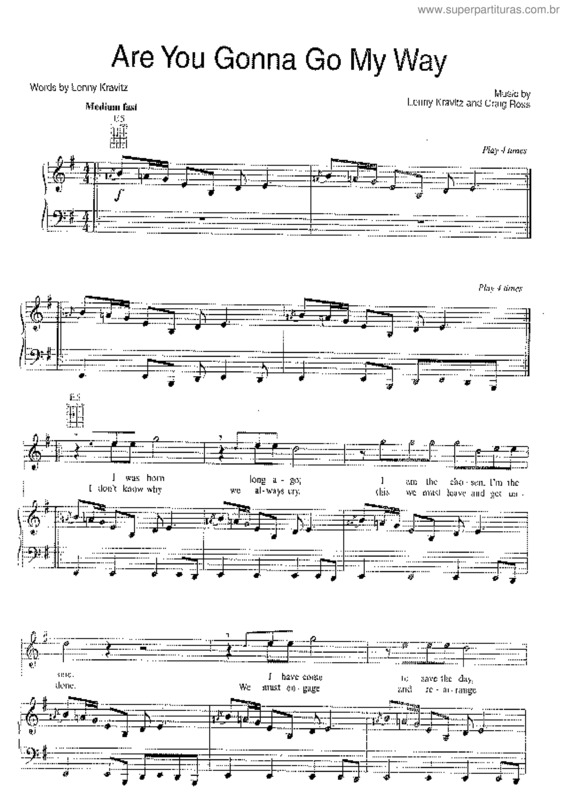 Super Partituras Are You Gonna Go My Way (Lenny Kravitz), com cifra