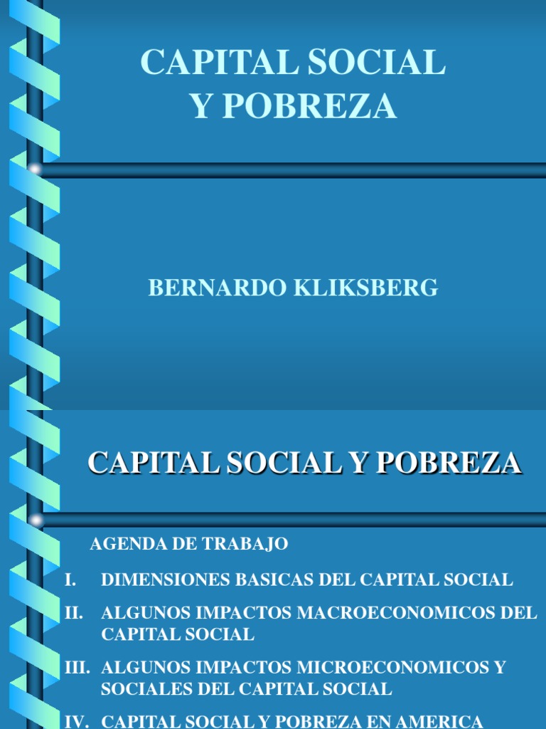 Capital Social y Pobreza Bernardo Kliksberg PDF Pobreza Pobreza e indigencia