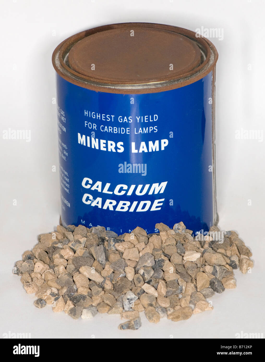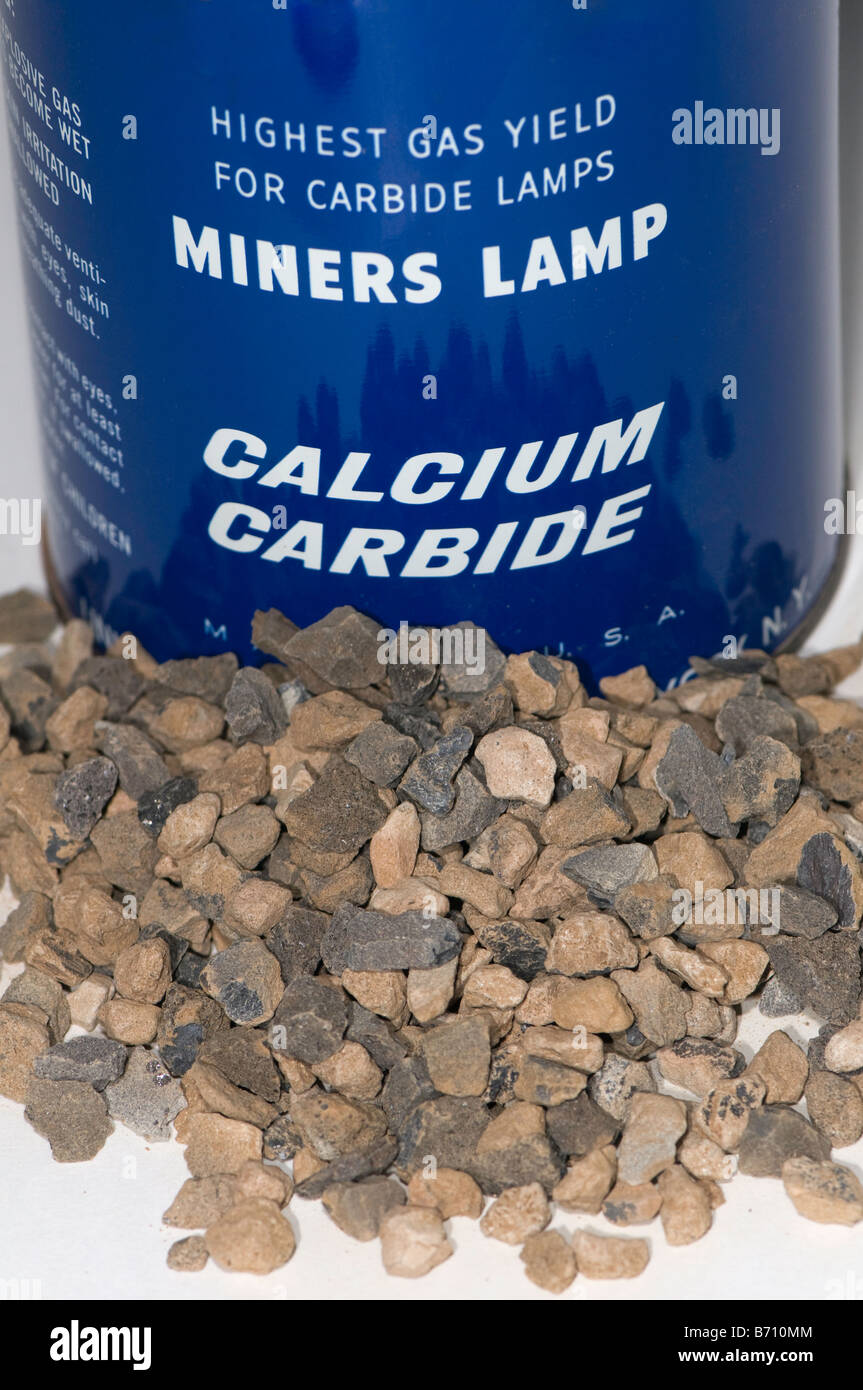 El carburo de calcio es una sustancia sólida de color grisáceo que reacciona exotérmicamente con el agua para dar cal apagada ( hidróxido de calcio) y acetileno . Es de uso muy extendido y vendido en tiendas del ramo para utilizarlo en soldadura autógena. Con esta finalidad se lo introduce en un gasógeno, que le va agregando agua.