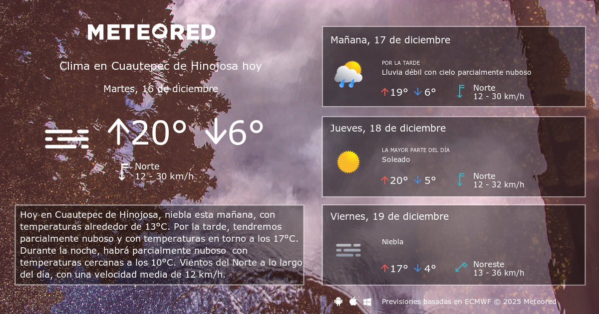 Clima en Cuautepec de Hinojosa por horas Meteored