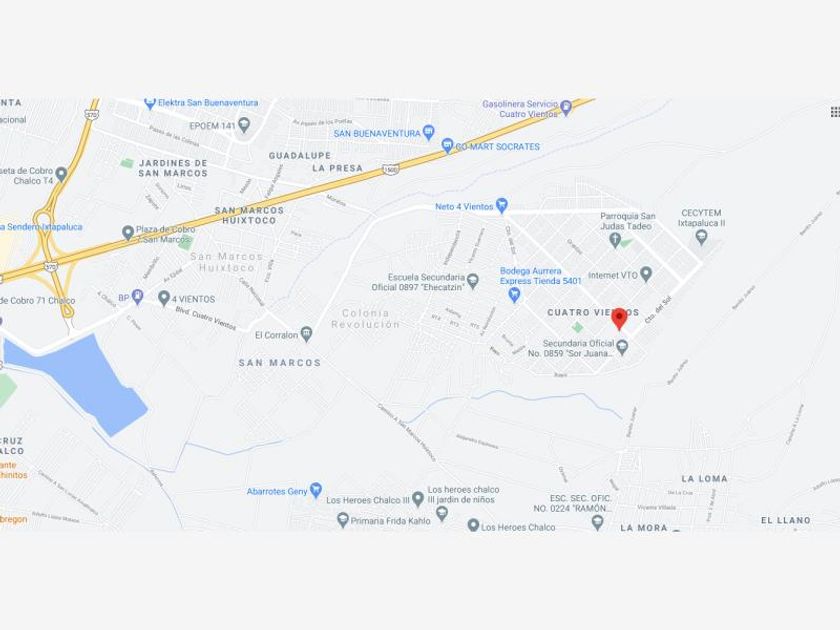 Código Postal y mapa de Cuatro Vientos(Fraccionamiento) en Ixtapaluca Estado de México. Código Postal 56589.