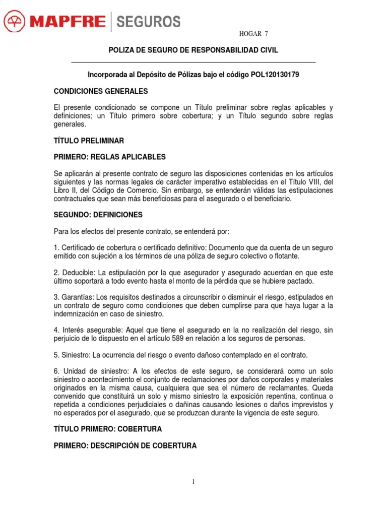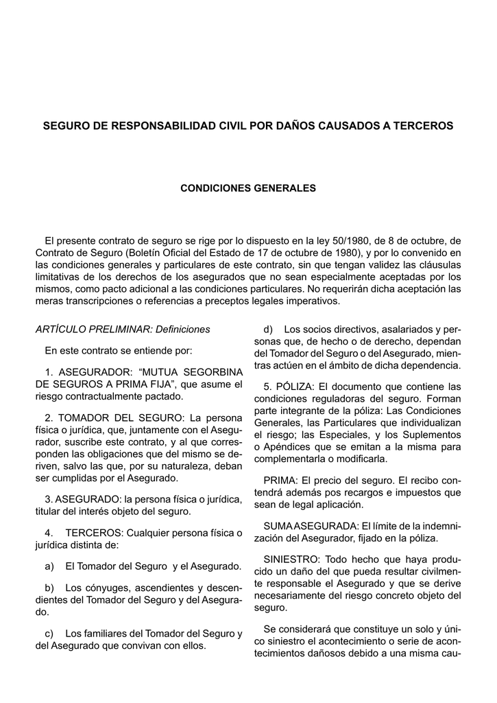 Poliza Seguro Responsabilidad Civil Póliza de seguros Seguro