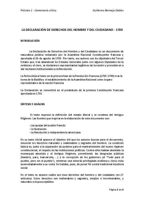 (DOC) LA DECLARACIÓN DE DERECHOS DEL HOMBRE Y DEL CIUDADANO 1789 Guillermo Bermejo Academia.edu