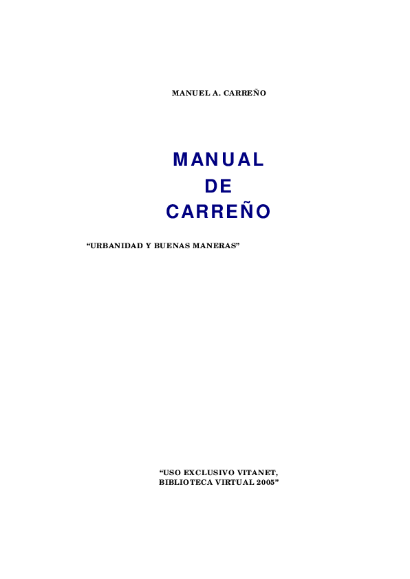 (PDF) MANUEL A. CARREÑO MANUAL DE CARREÑO " URBANIDAD Y BUENAS MANERAS " " USO EXCLUSIVO