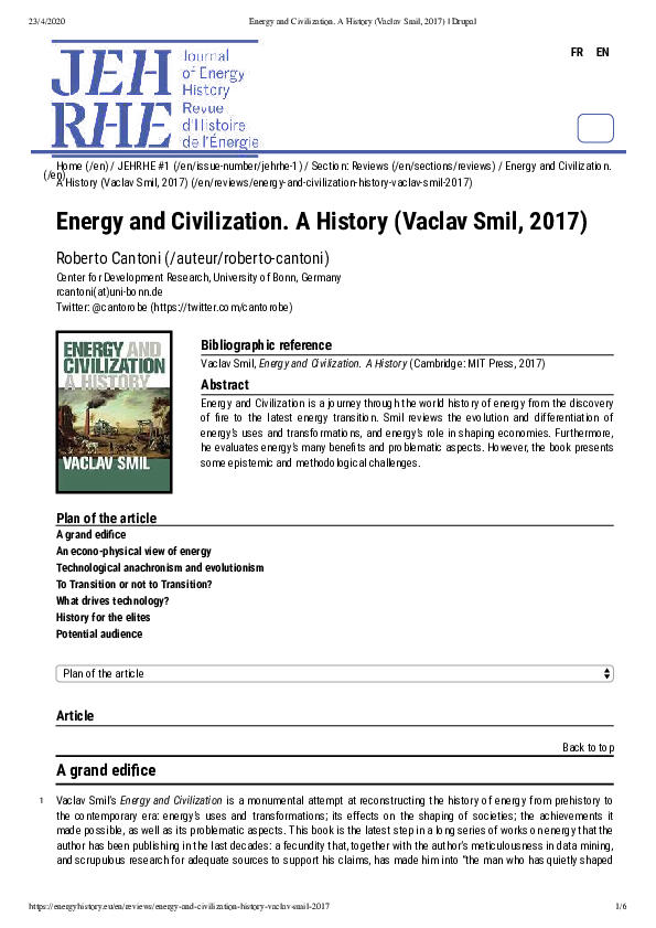 (PDF) Review Vaclav Smil. Energy and Civilization. A History. 2017 Roberto Cantoni Academia.edu