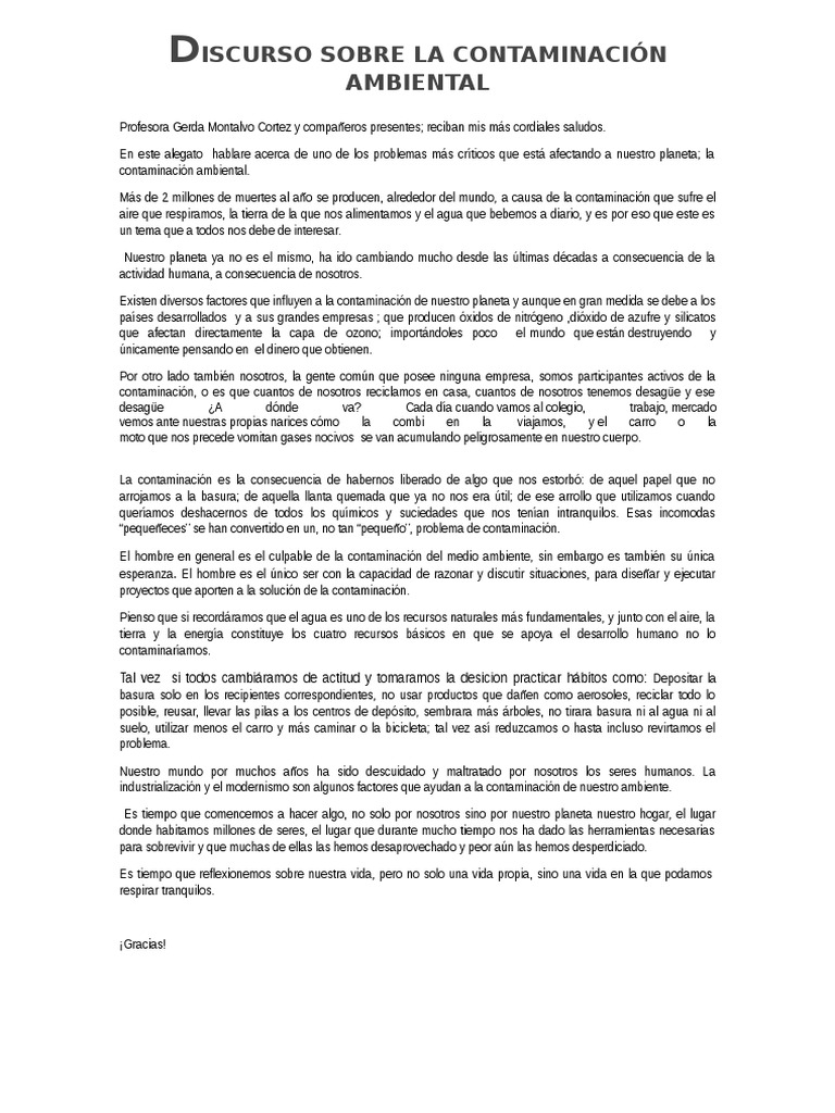 Discurso Sobre La Contaminacion Ambiental Contaminación Residuos