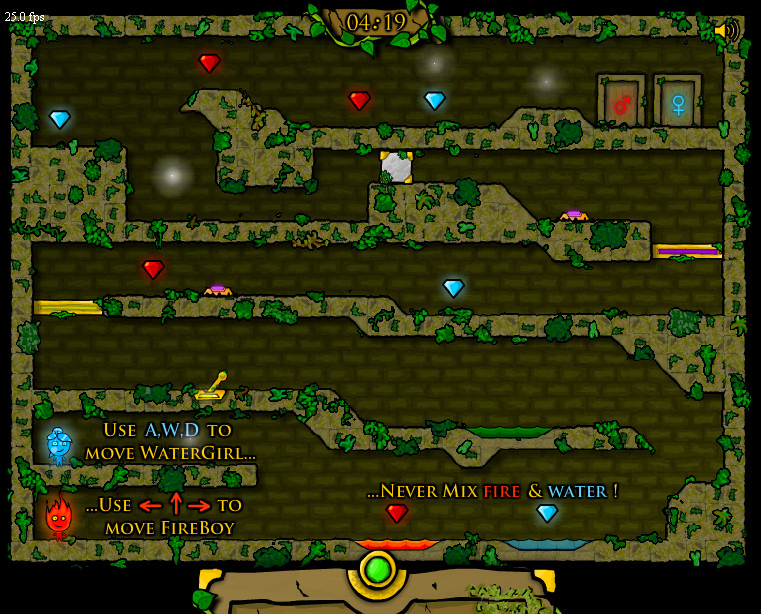 Un nuevo lugar, nuevos rompecabezas, pero el objetivo es el mismo. Ustedes dos deben ayudar a estos jóvenes viajeros a pasar con seguridad por cada una de las cámaras del templo. Como en la parte anterior del juego, esta vez también debes tener cuidado de no mezclar agua con fuego. Fireboy no debe tocar lagos de agua, mientras que Watergirl.