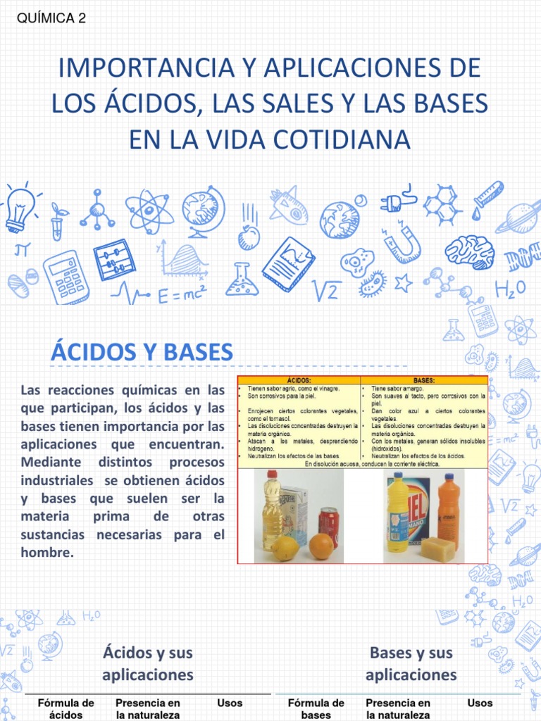 IMPORTANCIA Y APLICACIONES DE LOS ÁCIDOS, LAS SALES Y LAS BASES EN LA VIDA COTIDIANA Ácido
