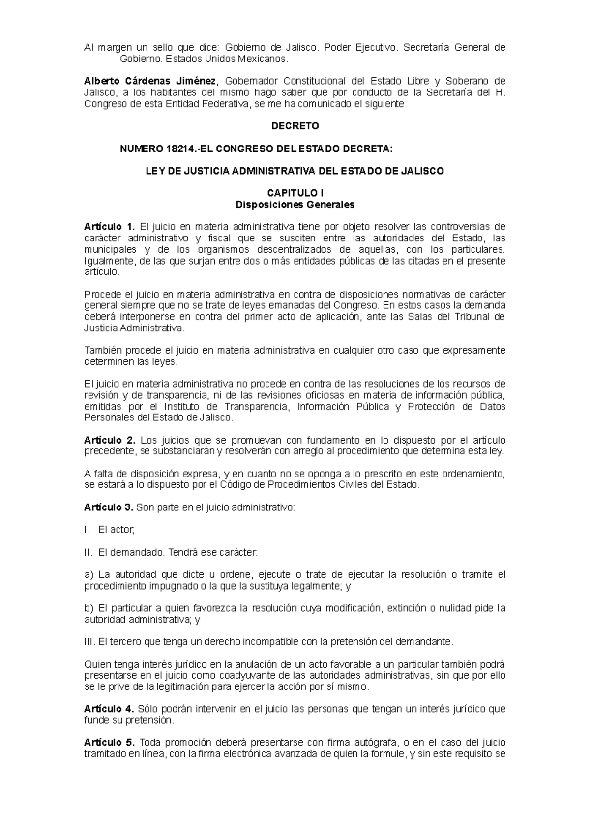 Ley de Justicia Administrativa del Estado de Jalisco pg. CAPITULO I Disposiciones Generales