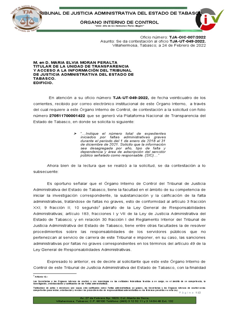 Tribunal de Justicia Administrativa Del Estado de Tabasco Órgano Interno de Control PDF