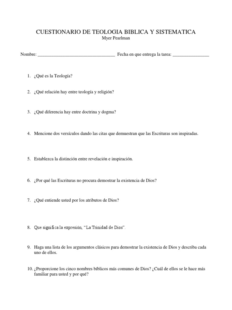 Cuestionario de Teologia Biblica y Sistematica PDF