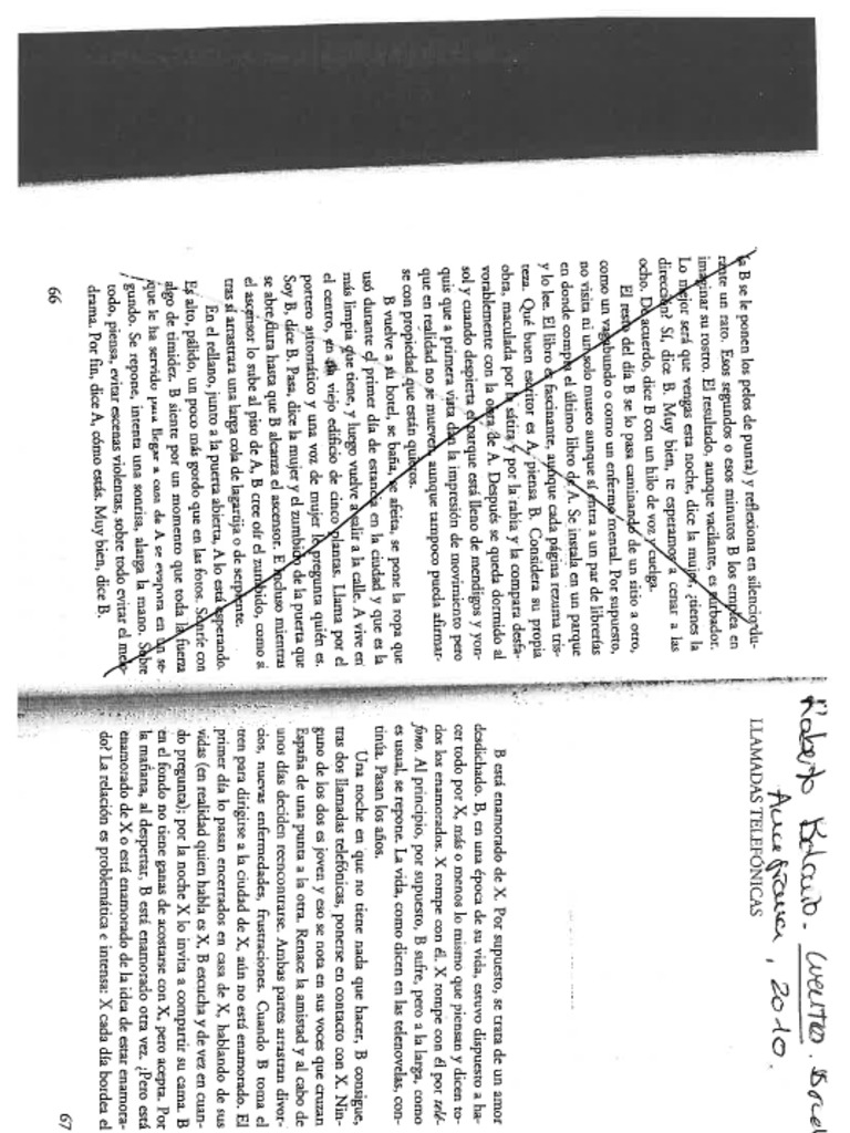 Llamadas telefónicas un cuento de Roberto Bolaño