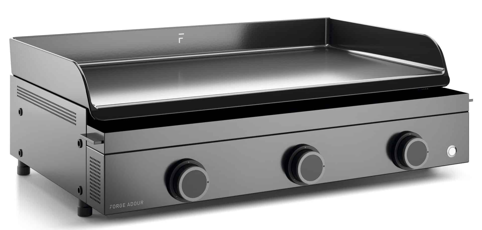 Plancha a gas de acero con baño de cromo duro 50 micras, 1 válvulas gas y 2 quemadores