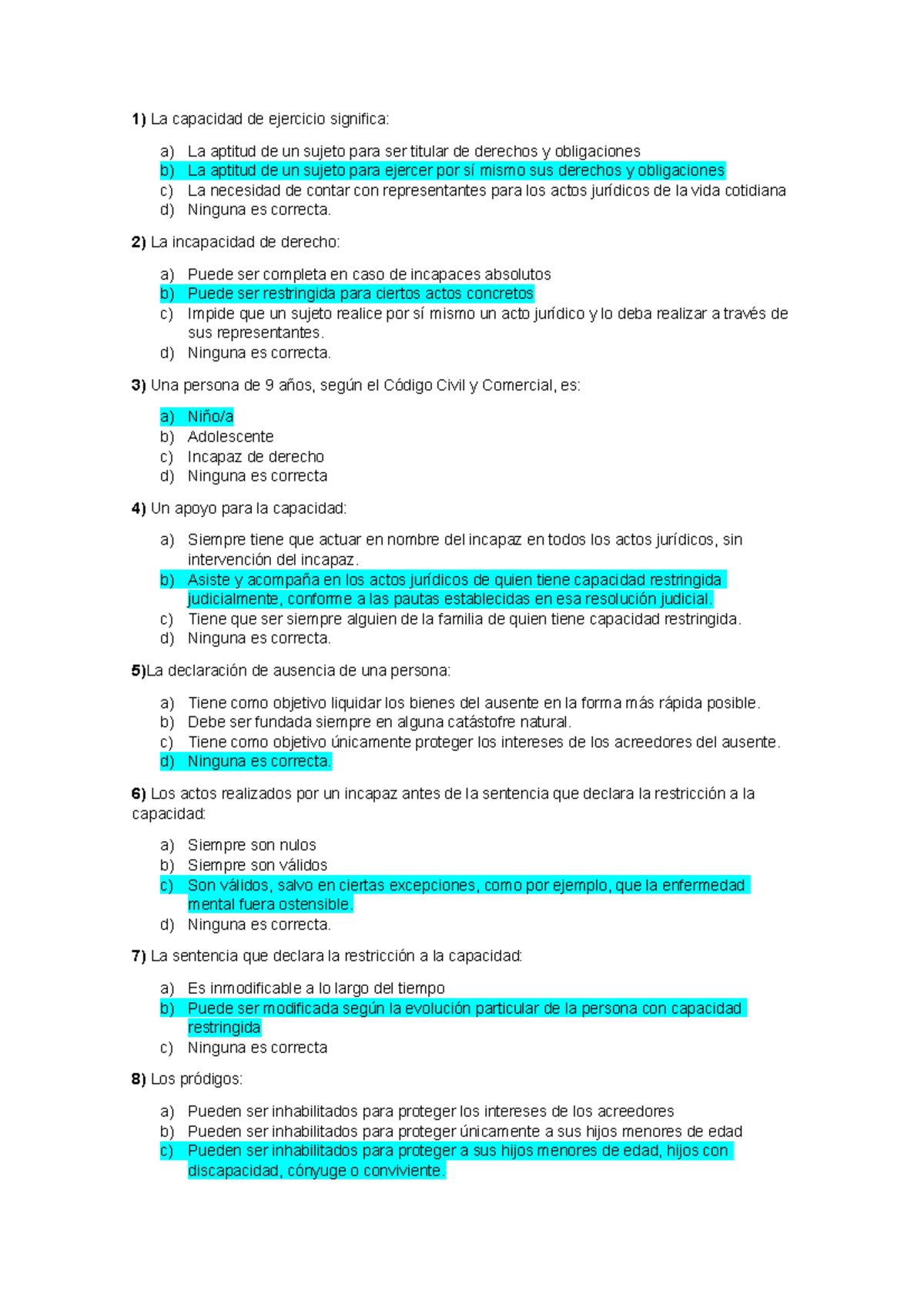 Derecho TP2 Correccion 1) La capacidad de ejercicio significa a) La aptitud de un sujeto para