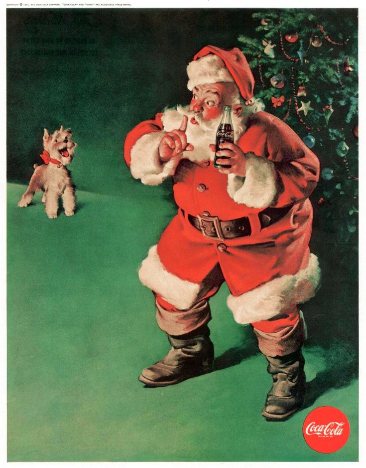 El papel de Coca-Cola en la popularización de Santa Claus. Para ese entonces, la imagen de Santa Claus no era muy conocida. Fue hasta los años 30, gracias a Coca-Cola, que el personaje se popularizó, pues la marca estadounidense hizo una campaña navideña en la que se veía al personaje en medio de la multitud bebiendo el refresco.