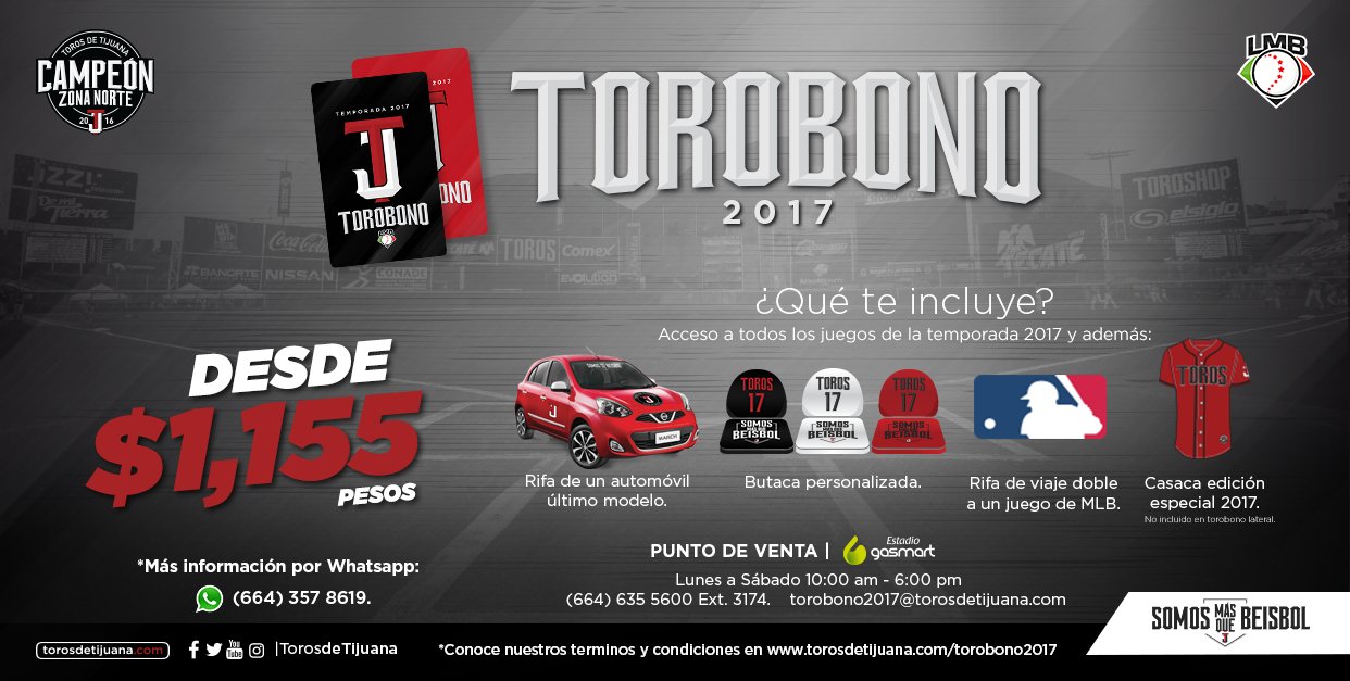 Toros de Tijuana🐃⚾️ on Twitter "¡Adquiere tu Torobono 2017 desde 1,155 pesos! ¡Te invitamos al