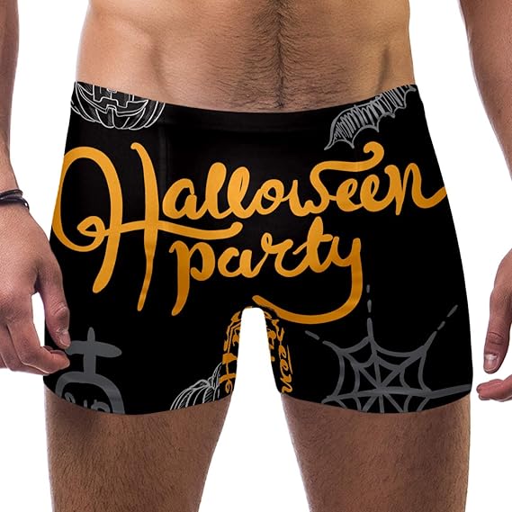 Anmarco Traje de baño corto para hombre, con texto en inglés "Noche de Halloween con iconos de